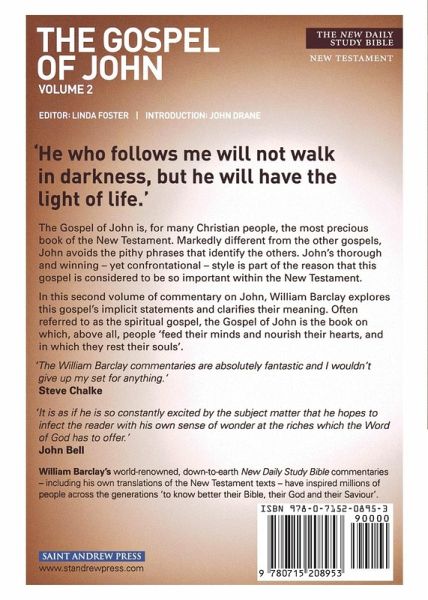 In this second volume of commentary on John, William Barclay explores this gospelâ s implicit statements and clarifies meaning. Often referred to as the spiritual gospel, it is the book on which, above all, people â feed their minds and nourish their hearts, and in which they rest their soulsâ .