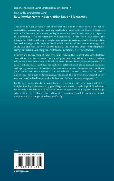 This book further develops both the traditional and the behavioural approach to competition law, and applies these approaches to a variety of timely issues. It discusses several fundamental questions regarding competition law and economics, and explores the applications of competition law and economics. In turn, the book analyses the interplay of intellectual property rights and patents in various aspects of competition law, and investigates the impacts that developments in information technology, such as big data analytics, have on competition law. The book also discusses the impact of energy law reforms on energy markets from a competition law perspective.