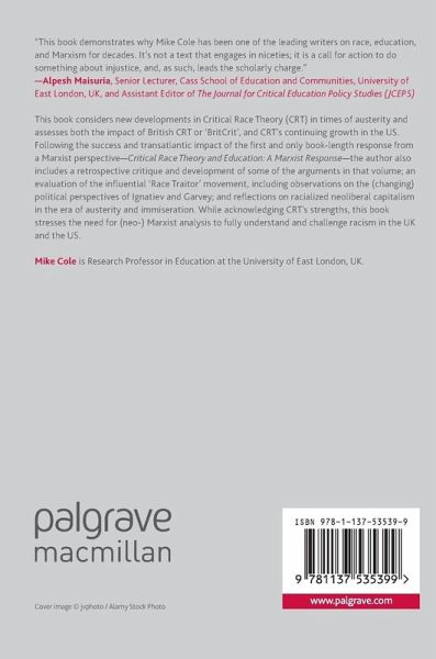 This book considers new developments in Critical Race Theory (CRT) in times of austerity and assesses both the impact of British CRT or 'BritCrit', and CRT's continuing growth in the US. Following transatlantic impact of the first and only book-length response from a Marxist perspective-Critical Race Theory and Education: A Marxist Response-Cole includes a retrospective critique and development of certain arguments in that volume; an evaluation of the influential 'Race Traitor' movement, including observations on the (changing) political perspectives of Ignatiev and Garvey; and reflections on racialized neoliberal capitalism in the era of austerity and immiseration. While acknowledging CRT's strengths, this book stresses the need for (neo-) Marxist analysis to fully understand and challenge racism in the UK and the US and to envision a socialism for the twenty-first century.