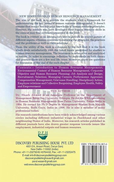 The aim of the book is to provide the students with a framework for understanding the key issues of human resource management. It doesn't assume that reader has any prior knowledge of human resource principles. However, the readers who have developed their human resource skills in the context may find contrasts presented in the book.