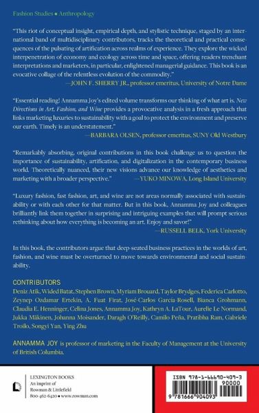 Chapter 1: New Directions in the Luxury Fashion and Wine Industries: Sustainability, Digitization and Artification by Annamma Joy Part I: Reflection Pieces on Artification Chapter 2: Contemporary Implications of Aestheticization by A. Fuat Firat Chapter 3: I Wish I'd Written That!: Non-Fungible Thoughts on Artistic Academic Articles by Stephen Brown Chapter 4: Digital Affordances and Artist Identity in the Music Industry: The Case of Imogen Heap by Gabriele Troilo and Daragh O'Reilly Part II: Reflection Pieces on Sustainability and Fashion Chapter 5: How Circular Are Circular Business Models? by Songyi Yan, Taylor Brydges, Claudia E. Henninger, Celina Jones, Aurelie Le Normand, and Prathiba Ram Chapter 6: Luxury Fashion and Sustainability: Challenges, Conflicts, and Possibilities by Zeynep Ozdamar Ertekin and Denis Atik Chapter 7: "In Search of Lost Time": Luxury Fashion's Emerging Circular Initiatives and the Shifting Temporal Features of Fashion Consumption by Federica Carlotto Chapter 8: Conceptua