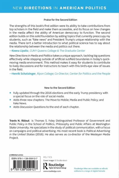 It would be difficult to find a more interesting topic than the relationship between the news media and politics, especially given that Americans are now living in the "Twitter presidency" of Donald Trump. Academic research in the area of media and politics is rapidly breaking new ground to keep pace with prolific media developments and societal changes. This innovative, up-to-date text moves beyond rudimentary concepts and definitions to consider exciting research as well as practical applications that address monumental changes in media systems in the US and the world. This carefully crafted volume explores key questions posed by academics and practitioners alike, exposing students to rigorous scholarship as well as everyday challenges confronted by politicians, journalists, and media consumers. Each chapter opens with a "big question" about the impact of the news media, provides an overview of the more general topic, and then answers that question by appealing to the best, most-up-to-date research in the field. The volume as a whole is held together by an exploration of the rapidly changing media environment and the influence these changes have on individual political behavior and governments as a whole. New Directions in Media and Politics makes an ideal anchor for courses as it digs deeper into the questions that standard textbooks only hint at-and presents scholarly evidence to support the arguments made. New to the Second Edition Fully updated through the 2016 elections and the early Trump presidency with a special focus on the role of social media. Adds three new chapters: The Move to Mobile; Media and Public Policy; and Fake News. Adds Discussion Questions to the end of each chapter.