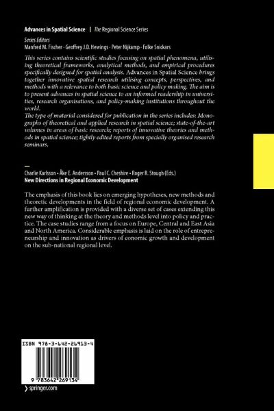 From the reviews: "This book provides an evaluation of new directions in regional economic development, particularly the role of entrepreneurship and innovation as drivers of economic growth and development on the sub-national regional level. ... volume contains many useful contributions embracing a variety of theories and practice in innovation and regional dynamics, which are ambitious both in scope and content. ... This volume would be recommended for scholars in any discipline interested in the innovation dimension of regional economics. The chapters are all theoretically and methodologically rigorous." (Xinyue Ye, Regional Studies, Vol. 45 (4), April, 2011) "Explores the various facets of knowledge creation in the regional context. The authors of its 21 chapters address topics as diverse as the economics of creativity, entrepreneurial cities, patents and knowledge spillovers, memes, network and traffic flows, infrastructure in the regional production function, R&D location, and innovation fields. ... It would be useful to follow up studies of this sort to discern how knowledge-based geographic clusters evolve through the usual product cycle ... . a lovely testimonial to Professor Johansson's influential work in regional science." (Gordon Mulligan, Journal of Regional Science, Vol. 51 (2), 2011)