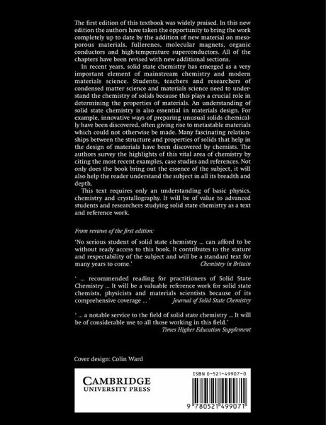 New edition of this widely praised textbook for advanced students and researchers studying solid state chemistry and materials science.