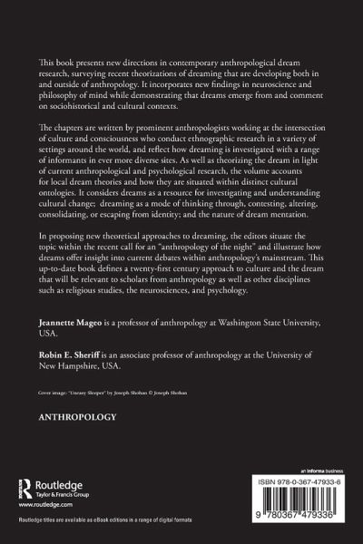 The chapters are written by prominent anthropologists working at the intersection of culture and consciousness who conduct ethnographic research in a variety of settings around the world, and reflect how dreaming is investigated by a range of informants in ever more diverse sites. As well as theorizing the dream in light of current anthropological and psychological research, the volume accounts for local dream theories and how they are situated within distinct cultural ontologies. It considers dreams as a resource for investigating and understanding cultural change; dreaming as a mode of thinking through, contesting, altering,consolidating, or escaping from identity; and the nature of dream mentation.