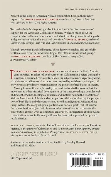This volume closely examines the movement to resettle black Americans in Africa, an effort led by the American Colonization Society during the nineteenth century and a heavily debated part of American history. Some believe it was inspired by antislavery principles, but others think it was a proslavery reaction against the presence of free blacks in society. Moving beyond this simplistic debate, contributors link the movement to other historical developments of the time, revealing a complex web of different schemes, ideologies, and activities behind the relocation of African Americans to Liberia. They explain what colonization, emigration, immigration, abolition, and emancipation meant within nuanced nineteenth-century contexts, looking through many lenses to more accurately reflect the past.
