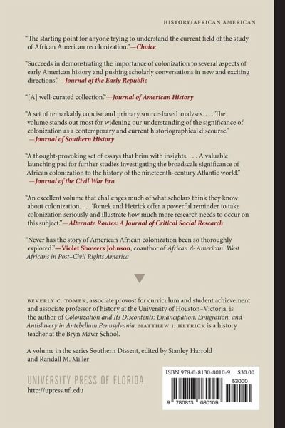 Beginning in 1816, the American Colonization Society worked to send American blacks to resettle in Africa. From inception, however, its foundational ethos has been debated. These debates continued long after the effective end of the ACS during WWI through the Civil Rights movement to today, when even historians among the Press's own authors respectfully hold opposing views. In this volume, Beverly Tomek and Matthew Hetrick gather essays from scholars with different opinions and divergent methodologies, offering not only new research to address some of the old questions about American colonization and missionary activities but also new questions to spur further debate.