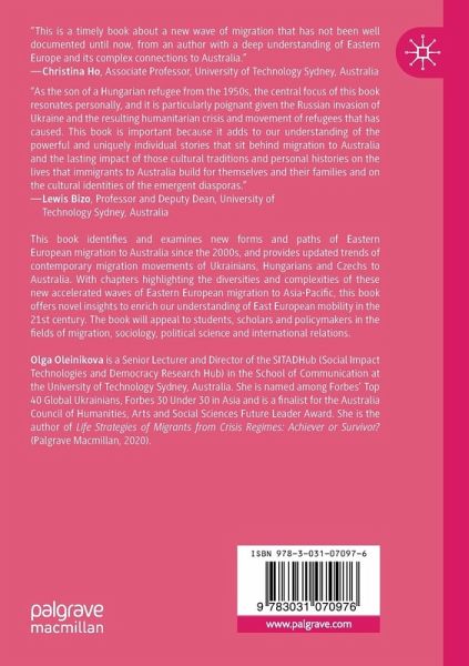 This book identifies and examines new forms and paths of Eastern European migration to Australia since the 2000s, and provides updated trends of contemporary migration movements of Ukrainians, Hungarians and Czechs to Australia. With chapters highlighting the diversities and complexities of these new accelerated waves of Eastern European migration to Asia-Pacific, this book offers novel insights to enrich our understanding of East European mobility in the 21st century. The book will appeal to students, scholars and policymakers in the fields of migration, sociology, political science and international relations.