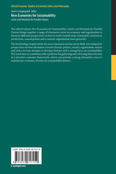 The edited volume New Economies for Sustainability: Limits and Potentials for Possible Futures brings together a range of alternative views on economy and organization to illustrate different perspectives on how to work towards more sustainable solutions to production, consumptions and economic organization more generally. The book brings chapters from the most renowned scholars in the field, who bring their perspectives on how alternative schools theorize politics, society, organization, nature and ethics in their attempts to develop theories with a strong focus on sustainability. The book aims to contribute with a platform for gathering and collecting these theories in a pluralist economic framework, which can provide a strong alternative voice to mainstream economic theories in sustainability debates.