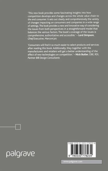 'This new book provides some fascinating insights into how competition develops and changes across the whole value chain to the end consumer. It sets out clearly and comprehensively the variety of changes impacting on consumers and companies in a wide range of settings. The book provides a new and innovative way of considering the issues from both perspectives in a straightforward model that balances the various factors. The book's coverage of the issues is comprehensive, authoritative and accessible.' - Lord Simpson, Chief Executive, Marconi plc