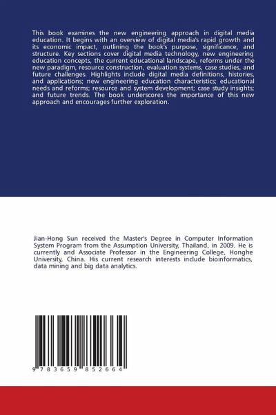 This book examines the new engineering approach in digital media education. It begins with an overview of digital media's rapid growth and its economic impact, outlining the book's purpose, significance, and structure. Key sections cover digital media technology, new engineering education concepts, the current educational landscape, reforms under the new paradigm, resource construction, evaluation systems, case studies, and future challenges. Highlights include digital media definitions, histories, and applications; new engineering education characteristics; educational needs and reforms; resource and system development; case study insights; and future trends. The book underscores the importance of this new approach and encourages further exploration.