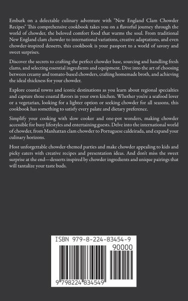 Embark on a delectable culinary adventure with "New England Clam Chowder Recipes" This comprehensive cookbook takes you on a flavorful journey through the world of chowder, the beloved comfort food that warms the soul. From traditional New England clam chowder to international variations, creative adaptations, and even chowder-inspired desserts, this cookbook is your passport to a world of savory and sweet surprises. Discover the secrets to crafting the perfect chowder base, sourcing and handling fresh clams, and selecting essential ingredients and equipment. Dive into the art of choosing between creamy and tomato-based chowders, crafting homemade broth, and achieving the ideal thickness for your chowder. Explore coastal towns and iconic destinations as you learn about regional specialties and capture those coastal flavors in your own kitchen. Whether you're a seafood lover or a vegetarian, looking for a lighter option or seeking chowder for all seasons, this cookbook has something to satisfy every palate and dietary preference. Simplify your cooking with slow cooker and one-pot wonders, making chowder accessible for busy lifestyles and entertaining guests. Delve into the international world of chowder, from Manhattan clam chowder to Portuguese caldeirada, and expand your culinary horizons. Host unforgettable chowder-themed parties and make chowder appealing to kids and picky eaters with creative recipes and presentation ideas. And don't miss the sweet surprise at the end-desserts inspired by chowder ingredients and unique pairings that will tantalize your taste buds.