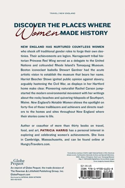 New England has nurtured countless women who shook off traditional gender roles to forge their own destinies. Their achievements are legion. Narragansett tribal historian Princess Red Wing served as a delegate to the United Nations and co-founded Rhode Island’s Tomaquag Museum. Boston iconoclast Isabella Stewart Gardner had the acute artistic vision to establish the museum that bears her name. Harriet Beecher Stowe ignited public opinion against slavery, arguably hastening the Civil War, as displays in her Hartford home make clear. Pioneering naturalist Rachel Carson jumpstarted the modern environmental movement with her writings about the rocky beaches and quivering tidepools of Southport, Maine. New England's Notable Women shines the spotlight on 45 of these trailblazers and achievers and directs readers to the homes and sites throughout New England where their stories come to life.