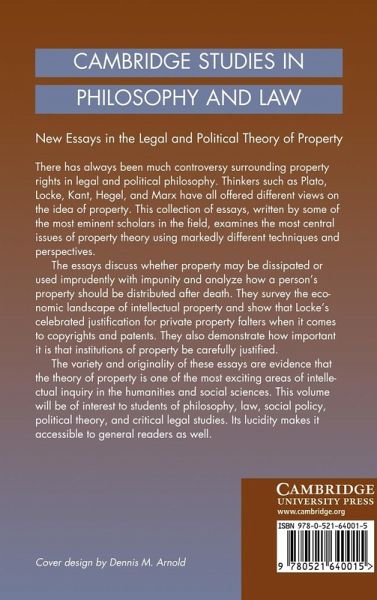 There has always been much controversy surrounding property rights in legal and political philosophy. Thinkers such as Plato, Locke, Kant, Hegel and Marx have all offered different views on the idea of property. This collection of new essays, written by some of the most eminent scholars in the field, examines the most central issues of property theory from a variety of perspectives. The essays discuss whether property may be dissipated or used imprudently with impunity, and analyze how a person's property should be distributed after death. They survey the current economic landscape of intellectual property and show that Locke's celebrated justification for private property falters when it comes to copyrights and patents. They also demonstrate how important it is that institutions of property be carefully justified. The variety and originality of these essays are evidence that the theory of property is now one of the most exciting areas of intellectual inquiry in the humanities and social sciences.