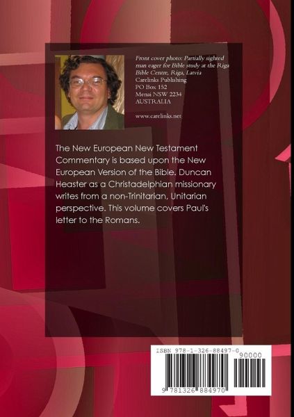 The New European New Testament Commentary is based upon the New European Version of the Bible. Duncan Heaster as a Christadelphian missionary writes from a non-Trinitarian, Unitarian perspective. This volume covers Paul's letter to the Romans.