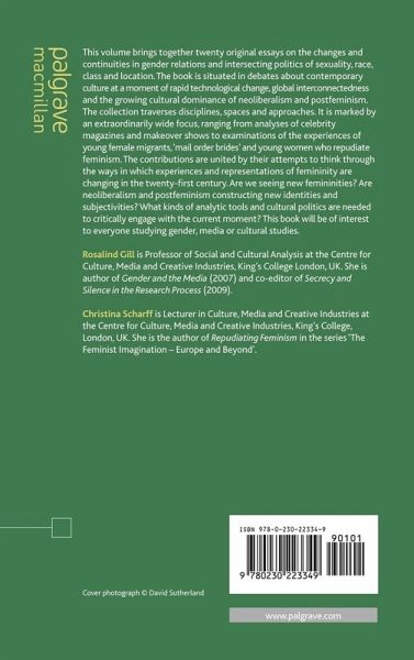 "New Femininities is an outstanding collection of theoretically rich and engaging essays that analyze how the global project of neoloberalism has coopted many of the basic tenets of feminism in corporately shrewd and often reactionary ways while selling all this as female empowerment. New Femininities is especially strong in showing how various media have worked to constitute new female subjectivities that are deeply contradictory. A very smart, timely and important anthology." - Susan J. Douglas, Professor of Communication Studies, University of Michigan, USA, and author of The Rise of Enlightened Sexism