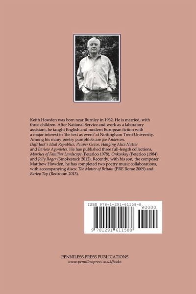 Keith Howden was born near Burnley in 1932. He is married, with three children. After National Service and work as a laboratory assistant, he taught English and modern European fiction with a major interest in 'the text as event' at Nottingham Trent University. Among his many poetry pamphlets are Joe Anderson, Daft Jack's Ideal Republics, Pauper Grave, Hanging Alice Nutter and Barlow Agonistes. He has published three full-length collections, Marches of Familiar Landscape (Peterloo 1978), Onkonkay (Peterloo (1984) and Jolly Roger (Smokestack 2012). Recently, with his son, the composer Matthew Howden, he has completed two poetry music collaborations, with accompanying discs: The Matter of Britain (PRE Rome 2009) and Barley Top (Redroom 2013).