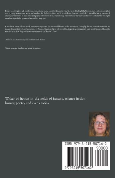 Enya was driving through bombs one moment and found herself sinking into water the next. The bright light was not a bomb esploding but a ate opening between one world and another. She finds herself in a world very different from the one she left. A world where you can't tell anyne yourtrue name or trust most beings you come across. Enya meets beings ofraces tht she neverdreamed existed and one that was right out of the legends her grandmother told her long ago. Randal isan actual elf, one much older than anyone on thi new world knows, or he remembers. Going by the use name of Damocles, he rescues Enya and gives her the use name of Athena. Together they work toward finding and rescuing people until an old enemy of Randal's raise his head. Can they survive the anicent enmity of Randal's Past? Thisbook is a drak fantasy and contains adult themes Trigger warning for abuseand sexual situations.