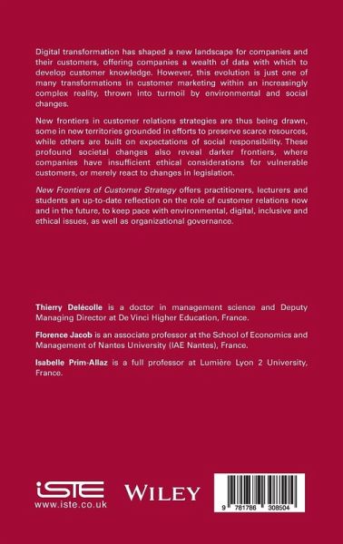 Digital transformation has shaped a new landscape for companies and their customers, offering companies a wealth of data with which to develop customer knowledge. However, this evolution is just one of many transformations in customer marketing within an increasingly complex reality, thrown into turmoil by environmental and social changes. New frontiers in customer relations strategies are thus being drawn, some in new territories grounded in efforts to preserve scarce resources, while others are built on expectations of social responsibility. These profound societal changes also reveal darker frontiers, where companies have insufficient ethical considerations for vulnerable customers, or merely react to changes in legislation. New Frontiers of Customer Strategy offers practitioners, lecturers and students an up-to-date reflection on the role of customer relations now and in the future, to keep pace with environmental, digital, inclusive and ethical issues, as well as organizational governance.