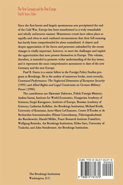 " Since the first heroic and largely spontaneous acts precipitated the end of the Cold War, Europe has been transformed in a truly remarkable and wholly unforeseen manner: Germany has been unified, the Warsaw Pact has collapsed, and the Soviet Union has disintegrated, leaving in its wake many new independent states. These momentous events have taken place so rapidly and often in such confused circumstances that their full meaning has barely been comprehended let alone assimilated. A clearer and deeper appreciation of the forces and processes unleashed by the recent changes is vitally important, however, to meet the challenges and exploit the opportunities that now present themselves in Europe. This volume, therefore, is intended to promote wider understanding of the key issues, and it represents the most comprehensive assessment to date of the new Germany and the new Europe. The volume begins with detailed accounts by U.S. and German scholars of how unification came about and the resulting changes to the political economy, security policy, and foreign relations. A complementary section discusses the implications for the rest of Europe as well as Japan. While the focus of the book is on the new Germany, two separate chapters provide specific designs for a new adoption of a general system of cooperative security."