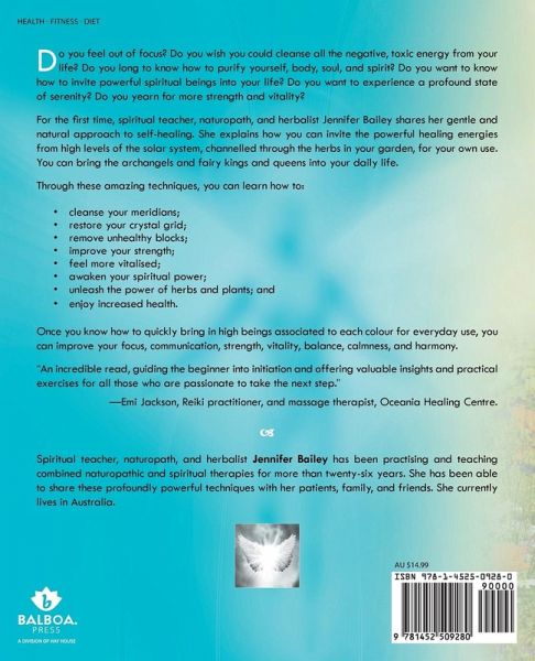 Do you feel out of focus? Do you wish you could cleanse all the negative, toxic energy from your life? Do you long to know how to purify yourself, body, soul, and spirit? Do you want to know how to invite powerful spiritual beings into your life? Do you want to experience a profound state of serenity? Do you yearn for more strength and vitality? For the first time, spiritual teacher, naturopath, and herbalist Jennifer Bailey shares her gentle and natural approach to self-healing. She explains how you can invite the powerful healing energies from high levels of the solar system, channelled through the herbs in your garden, for your own use. You can bring the archangels and fairy kings and queens into your daily life. Through these amazing techniques, you can learn how to: ¿ cleanse your meridians; ¿ restore your crystal grid; ¿ remove unhealthy blocks; ¿ improve your strength; ¿ feel more vitalised; ¿ awaken your spiritual power; ¿ unleash the power of herbs and plants; and ¿ enjoy increased health. Once you know how to quickly bring in high beings associated to each colour for everyday use, you can improve your focus, communication, strength, vitality, balance, calmness, and harmony. "An incredible read, guiding the beginner into initiation and offering valuable insights and practical exercises for all those who are passionate to take the next step." -Emi Jackson, Reiki practitioner, and massage therapist, Oceania Healing Centre.