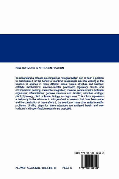 In order to understand a process as complex as nitrogen fixation and to be in a position to manipulate it for the benefit of mankind, researchers are now working at the frontiers of science in many different areas: protein structure and function; catalytic mechanisms; electron transfer processes; regulatory circuits and environmental sensing; metabolic integration; chemical communication between organisms; differentiation; genome structure and function; microbial ecology; plant physiology; plant molecular biology; and agronomy. This volume represents a testimony to the advances in nitrogen fixation research that have been made and the contribution of these efforts to the solution of many other varied scientific problems. Limiting steps for future advances are analyzed and new horizons in nitrogen fixation research are proposed.