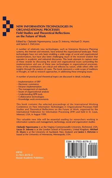 This book contains the selected proceedings of the International Working Conference on New Information Technologies in Organizational Processes: Field Studies and Theoretical Reflections on the Future of Work, organized by the International Federation for Information Processing (IFIP) and held in St. Louis, Missouri, USA, in August 1999.
