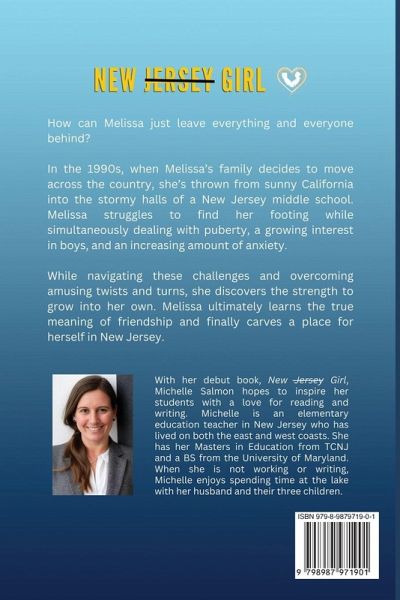Michelle Salmon has been an elementary school teacher for nineteen years in New Jersey. With her first book, New Jersey Girl, she hoped to inspire her students to write and to love reading. She has spent her life living on both coasts. Michelle has her Masters in Education from TCNJ and a BS from the University of Maryland. When she is not working or writing, Michelle enjoys spending time at the lake with her husband and their three kids.