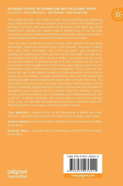 This volume presents case studies of news media employing and integrating social media into their news production practices. It links social media use to journalistic practices and news production processes in the digital age of the Global South. Critically, the chapters look at seminal cases of start-up news media whose content is informed by trends in social media, ethical considerations and participatory cultures spurred by the wide use of social media.