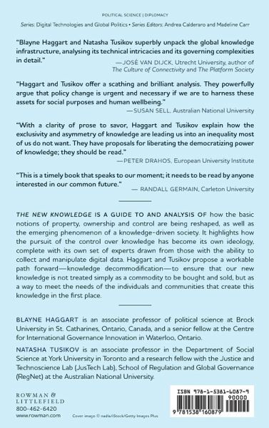 From the global geopolitical arena to the smart city, control over knowledge-particularly over data and intellectual property-has become a key battleground for the exercise of economic and political power. For companies and governments alike, control over knowledge-what scholar Susan Strange calls the knowledge structure-has become a goal unto itself. The rising dominance of the knowledge structure is leading to a massive redistribution of power, including from individuals to companies and states. Strong intellectual property rights have concentrated economic benefits in a smaller number of hands, while the "internet of things" is reshaping basic notions of property, ownership, and control. In the scramble to create and control data and intellectual property, governments and companies alike are engaging in ever-more surveillance. The New Knowledge is a guide to and analysis of these changes, and of the emerging phenomenon of the knowledge-driven society. It highlights how the pursuit of the control over knowledge has become its own ideology, with its own set of experts drawn from those with the ability to collect and manipulate digital data. Haggart and Tusikov propose a workable path forward-knowledge decommodification-to ensure that our new knowledge is not treated simply as a commodity to be bought and sold, but as a way to meet the needs of the individuals and communities that create this knowledge in the first place.
