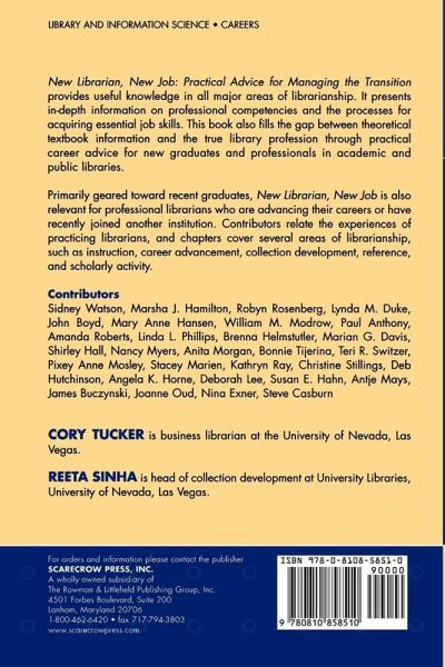 New Librarian, New Job: Practical Advice for Managing the Transition is designed to provide practical knowledge in all major areas of librarianship for new and existing professionals. In addition, it provides in-depth information on professional competencies and the processes for acquiring the essential job skills to perform effectively. This book fills the gap between theoretical textbook information and the true library profession through practical job and career advice for new graduates and professionals in academic and public libraries. Primarily geared towards recent graduates, this resource will also be relevant for professional librarians who are several years into their career and have recently joined a new position or institution. Contributors relate the experiences of practicing librarians and cover various areas of librarianship, such as instruction, career advancement, collection development, reference, and scholarly activity.