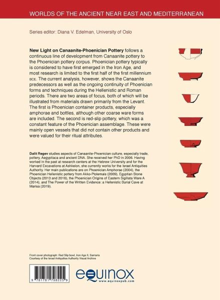 This book follows a continuous line of development from Canaanite pottery to the Phoenician pottery corpus. Phoenician pottery typically is considered to have first emerged in the Iron Age, and most research is limited to the first half of the first millennium BCE. The current analysis, however, shows the Canaanite predecessors as well as the ongoing continuity of Phoenician forms and techniques during the Hellenistic and Roman periods. There are two areas of focus, both of which will be illustrated from materials drawn primarily from the Levant. The first is Phoenician container products, especially amphorae and bottles, although other coarse ware forms are included. The second is red-slip pottery, which was a constant feature of the Phoenician assemblage. These were mainly open vessels that did not contain other products and were valued for their ritual attributes.