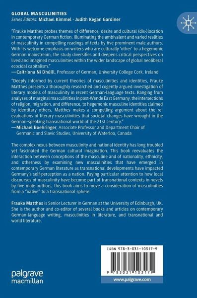 The complex nexus between masculinity and national identity has long troubled, but also fascinated the German cultural imagination. This has become apparent again since the fall of the Iron Curtain and the turn of the millennium when transnational developments have noticeably shaped Germany's self-perception as a nation. This book examines the social and political impact of transnationalism with reference to current discourses of masculinity in novels by five contemporary male German-language authors. Specifically, it analyses how conceptions of the masculine interact with those of nationality, ethnicity, and otherness in the selected texts and assesses the new masculinities that result from those interactions. Exploring how local discourses of masculinity become part of transnational contexts in contemporary writing, the book moves a consideration of masculinities from a "native" into a transnational sphere.