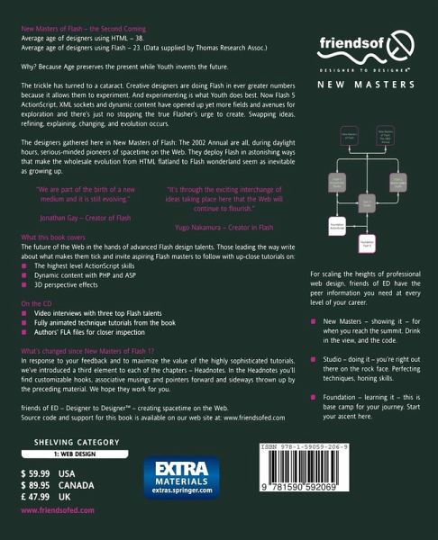 New Masters of Flash: The 2002 Annual gives competent web artists inspiration for cutting-edge Flash design techniques, as well as hard tutorial information on how to build top class effects. The format builds on the best of the original best-selling title while improving in areas where the first volume was weaker, (e.g. generic customizable code examples), while the talents, the inspirations and effects are all of the moment and represent the mature and expert deployment of the staggering new capabilities of Flash 5 ActionScript.