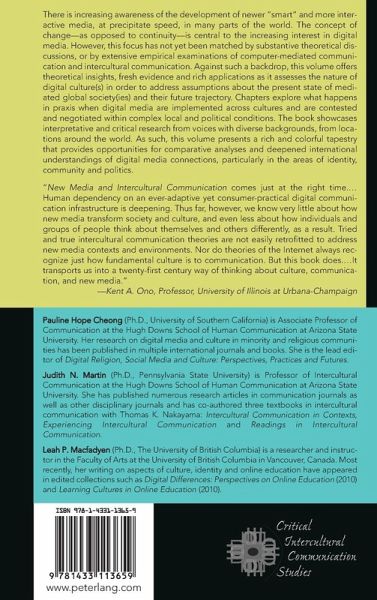 «New Media in Intercultural Communication comes just at the right time. Social networking sites like Facebook and Twitter, audio and video download sites such as iTunes, YouTube, and Netflix, not to mention blogs, search browsers like Google, wi-fi technology, TiVo, mobile communication devices, and teleconferencing systems such as Skype continue to demonstrate their indispensability across wide-ranging and uneven modernities. Human dependency on an ever-adaptive yet consumer-practical digital communication infrastructure is deepening. Thus far, however, we know very little about how new media transform society and culture, and even less about how individuals and groups of people think about themselves and others differently, as a result. Tried and true intercultural communication theories are not easily retrofitted to address new media contexts and environments. Nor do theories of the Internet always recognize just how fundamental culture is to communication. But, New Media in Intercultural Communication does. Fortunately, it transports us into a 21st Century way of thinking about culture, communication, and new media.» (Kent A. Ono, Professor, University of Illinois at Urbana-Champaign)
