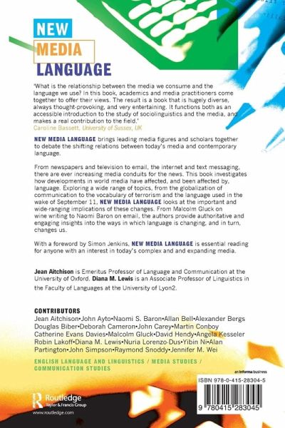 New Media Language brings leading media figures and scholars together to debate the shifting relations between today's media and contemporary language. From newspapers and television to email, the Internet and text messaging, there are ever increasing media conduits for news. This book investigates how developments in world media have affected, and been affected by, language. Exploring a wide range of topics, from the globalization of communication to the vocabulary of terrorism and the language used in the wake of September 11, New Media Language looks at the important and wide-ranging implications of these changes. From Malcolm Gluck on wine writing, to Naomi Baron on email, the authors provide authoritative and engaging insights into the ways in which language is changing, and in turn, changes us. With a foreword by Simon Jenkins, New Media Language is essential reading for anyone with an interest in today's complex and expanding media.