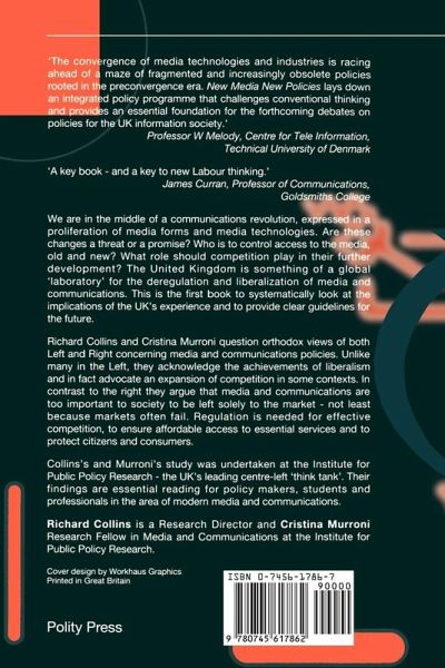 We are in the middle of a communications revolution, expressed in a proliferation of media forms and media technologies. Are these changes a threat or a promise? Who is to control access to the media, old and new? What role should competition play in their further development? The United Kingdom is something of a global 'laboratory' for the deregulation and liberalization of media and communications. This is the first book to look systematically at the implications of the UK's experience and to provide clear guidelines for the future. Richard Collins and Cristina Murroni question orthodox views of both Left and Right concerning media and communication policies. Unlike many in the Left, they acknowledge the achievements of liberalism and in fact advocate an expansion of competition in some contexts. In contrast to the Right they argue that media and communications are too important to society to be left solely to the market - not least because markets often fail. Regulation is needed for effective competition, to ensure affordable access to essential services and to protect citizens and consumers. Collins's and Murroni's study was undertaken at the Institute for Public Policy Research - the UK's leading centre-left 'think tank'. Their findings are essential reading for policy-makers, students and professionals in the area of modern media and communications.