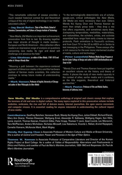 New Media, Old Media is a foundational text for general readers, students, and scholars of new media across the disciplines. It is essential reading for anyone interested in understanding the cultural impact of new media.