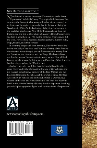 New Milford is located in western Connecticut, in the lower portion of Litchfield County. The original inhabitants of the area were the Potatuck who, along with other tribes, retreated as settlement of the region began--the first in the county being in Woodbury in 1672. At the beginning of the eighteenth century, the land that later became New Milford was purchased from the Indians, and the first settler, John Noble, arrived from Massachusetts and built a home here in 1707. As the centuries progressed, so did the town. New Milford became a business center with many mills, shops, taverns, and other services. In stunning images and clear narrative, New Milford traces the history not only of the town itself but also of many of the families whose names are an integral part of the community, among them the Bostwicks, the Heacocks, and the Kings. The book follows the development of the town--its industry, such as New Milford Pottery, its educational facilities, such as Canterbury School, and its familiar places, such as the Wayside Inn.