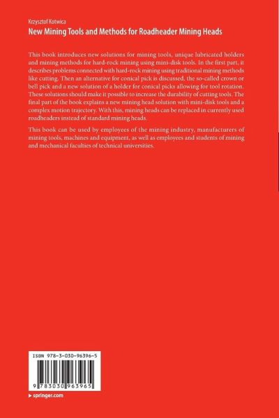 This book introduces new solutions for mining tools, unique lubricated holders and mining methods for hard-rock mining using mini-disk tools. In the first part, it describes problems connected with hard-rock mining using traditional mining methods like cutting. Then an alternative for conical pick is discussed, the so-called crown or bell pick and a new solution of a holder for conical picks allowing for tool rotation. These solutions should make it possible to increase the durability of cutting tools. The final part of the book explains a new mining head solution with mini-disk tools and a complex motion trajectory. With this, mining heads can be replaced in currently used roadheaders instead of standard mining heads.