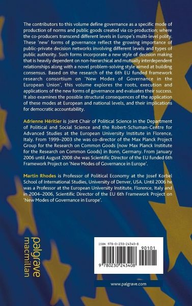 Based on the research of the EU-6th framework funded research consortium on 'New Modes of Governance in the European Union', this volume explores the roots, execution and applications of new forms of governance and evaluates their success.