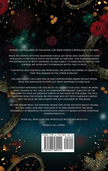 Beware the Children of the Moon, for their power is beholden to no man. When we stepped into the Ascension circle, my sister and I expected to gain our magic so we could solve the mystery of her past. Our parents carried the knowledge of what happened to her family to their grave, and to our surprise, my sister isn't a powerless witch-she's a wolf. "This witch and this wolf are worthless-no mates or powers to speak of. They will remain in the lower echelon." The High Mage's declaration of our unworthiness means we may never have the resources to find out what happened to her pack. The Goddess intended for this night to change our lives--while we were being shamed in the circle, an unknown adversary came out of the shadows to leave an ominous threat in the ashes of our home. The sole survivor from the attack on our home was left with a message carved into his back: We are coming for you, Children of the Moon. No one knows what the warning means and after the High Mage's decree, no one cares. Our only solution is to sink deeper into the seedy underbelly of Briarvale to investigate, even if it means letting everyone underestimate us. After all, what can one worthless witch and wolf do? Burn It. All. Down.