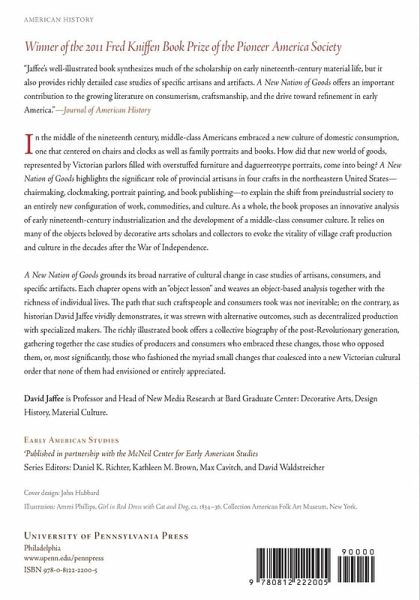 In the middle of the nineteenth century, middle-class Americans embraced a new culture of domestic consumption, one that centered on chairs and clocks as well as family portraits and books. How did that new world of goods, represented by Victorian parlors filled with overstuffed furniture and daguerreotype portraits, come into being? A New Nation of Goods highlights the significant role of provincial artisans in four crafts in the northeastern United States--chairmaking, clockmaking, portrait painting, and book publishing--to explain the shift from preindustrial society to an entirely new configuration of work, commodities, and culture. As a whole, the book proposes an innovative analysis of early nineteenth-century industrialization and the development of a middle-class consumer culture. It relies on many of the objects beloved by decorative arts scholars and collectors to evoke the vitality of village craft production and culture in the decades after the War of Independence. A New Nation of Goods grounds its broad narrative of cultural change in case studies of artisans, consumers, and specific artifacts. Each chapter opens with an object lesson and weaves an object-based analysis together with the richness of individual lives. The path that such craftspeople and consumers took was not inevitable; on the contrary, as historian David Jaffee vividly demonstrates, it was strewn with alternative outcomes, such as decentralized production with specialized makers. The richly illustrated book offers a collective biography of the post-Revolutionary generation, gathering together the case studies of producers and consumers who embraced these changes, those who opposed them, or, most significantly, those who fashioned the myriad small changes that coalesced into a new Victorian cultural order that none of them had envisioned or entirely appreciated.
