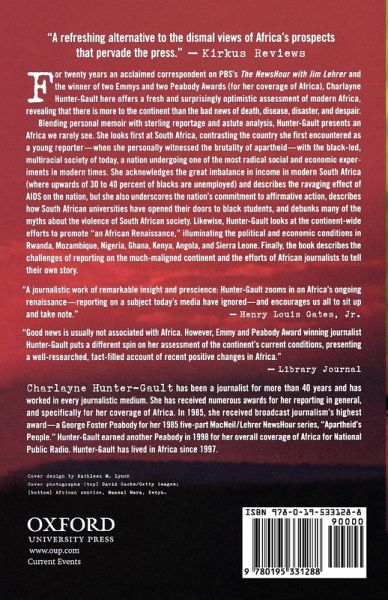 For twenty years an acclaimed correspondent on PBS's The News Hour with Jim Lehrer and the winner of two Emmys and two Peabody Awards (for her coverage of Africa), Charlayne Hunter-Gault here offers a fresh and surprisingly optimistic assessment of modern Africa, revealing that there is more to the continent than the bad news of disease, disaster, and despair. Blending personal memoir with sterling reportage and astute analysis, Hunter Gault presents an Africa we rarely see. She looks first at South Africa, contrasting the country she first encountered as a young reporter--when she personally witnessed the brutality of apartheid--with the black-led, multiracial society of today, a nation undergoing one of the most radical social and economic experiments in modern times. She acknowledges the great imbalance in income in modern South Africa (where upwards of 30 to 40 percent of blacks are unemployed) and describes the ravaging effect of AIDS on the nation, but she also underscores the nation's commitment to affirmative action, describes how South African universities have opened their doors to black students, and debunks many of the myths about the violence of South African society. Likewise, Hunter-Gault looks at the continent-wide efforts to promote "an African Renaissance," illuminating the political and economic conditions in Rwanda, Mozambique, Nigeria, Ghana, Kenya, Angola, and Sierra Leone. Finally, the book describes the challenges of reporting on the much-maligned continent and the efforts of African journalists to tell their own story. A compelling book on a topic of vital importance, New News Out of Africa promises to re-define what is news about this vast and complex continent. "A journalistic work of remarkable insight and prescience: Hunter-Gault zooms in on Africa's ongoing renaissance--reporting on a subject today's media have ignored--and encourages us all to sit up and take note." --Henry Louis Gates, Jr. "Good news is usually not associated with Africa. However, Emmy and Peabody Award-winning journalist Hunter-Gault puts a different spin on her assessment of the continent's current conditions, presenting a well-researched, fact-filled account of recent positive changes in Africa." --Library Journal