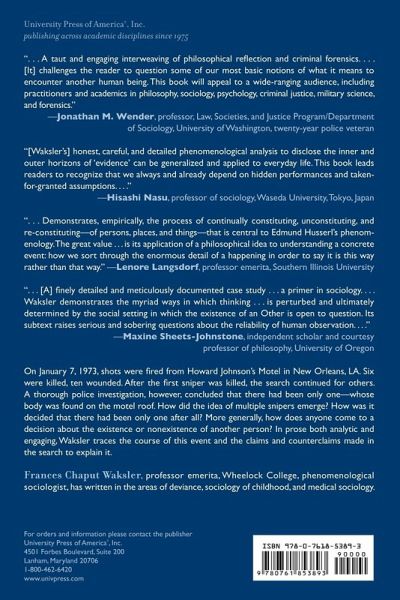 On January 7, 1973, shots were fired from Howard Johnson's Motel in New Orleans, LA. Six were killed, ten wounded, and the debate began about the number of snipers. Waksler traces the course of this event and analyzes claims and counterclaims made in the search to explain it.