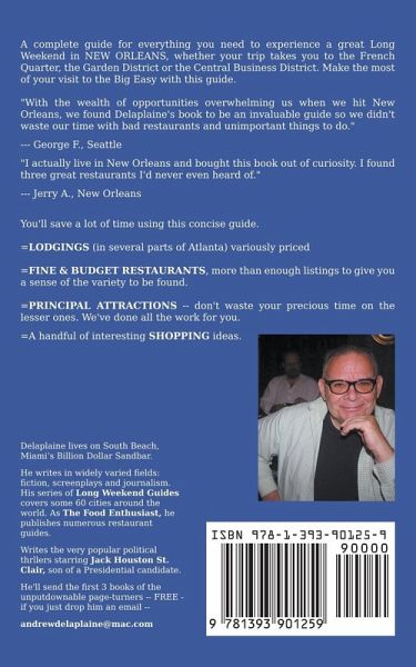 A complete guide for everything you need to experience a great Long Weekend in NEW ORLEANS, whether your trip takes you to the French Quarter, the Garden District or the Central Business District. Make the most of your visit to the Big Easy with this guide."With the wealth of opportunities overwhelming us when we hit New Orleans, we found Delaplaine's book to be an invaluable guide so we didn't waste our time with bad restaurants and unimportant things to do." --- George F., Seattle "I actually live in New Orleans and bought this book out of curiosity. I found three great restaurants I'd never even heard of." --- Jerry A., New Orleans You'll save a lot of time using this concise guide.=LODGINGS (in several parts of Atlanta) variously priced=FINE & BUDGET RESTAURANTS, more than enough listings to give you a sense of the variety to be found. =PRINCIPAL ATTRACTIONS -- don't waste your precious time on the lesser ones. We've done all the work for you. =A handful of interesting SHOPPING ideas.