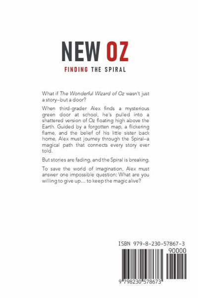 A hidden door. A forgotten map. A world above the clouds. Third-grader Alex never expected his school hallway to lead anywhere strange-until a magical green door appears between the cafeteria and the front entrance. What begins as a class reading of The Wonderful Wizard of Oz quickly spirals into a real-life adventure when Alex discovers a mysterious map tucked inside an old library book. Following clues only he can see, Alex steps through the door into a fractured sky-world filled with memories of Oz, shifting magic, and the secrets of forgotten stories. As he transforms into the Tin Man, Scarecrow, and Lion, Alex must face the puzzle at the heart of every great tale: Who am I, really? With the fate of imagination itself hanging by a thread, Oz Reimagined: Finding the Spiral is a magical journey for readers who believe in courage, curiosity, and the power of a well-told story.