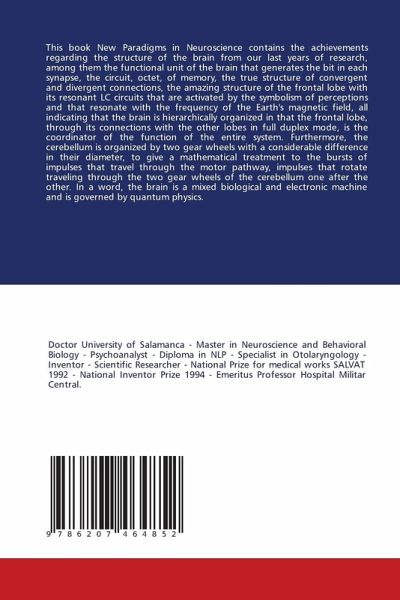 This book New Paradigms in Neuroscience contains the achievements regarding the structure of the brain from our last years of research, among them the functional unit of the brain that generates the bit in each synapse, the circuit, octet, of memory, the true structure of convergent and divergent connections, the amazing structure of the frontal lobe with its resonant LC circuits that are activated by the symbolism of perceptions and that resonate with the frequency of the Earth's magnetic field, all indicating that the brain is hierarchically organized in that the frontal lobe, through its connections with the other lobes in full duplex mode, is the coordinator of the function of the entire system. Furthermore, the cerebellum is organized by two gear wheels with a considerable difference in their diameter, to give a mathematical treatment to the bursts of impulses that travel through the motor pathway, impulses that rotate traveling through the two gear wheels of the cerebellum one after the other. In a word, the brain is a mixed biological and electronic machine and is governed by quantum physics.