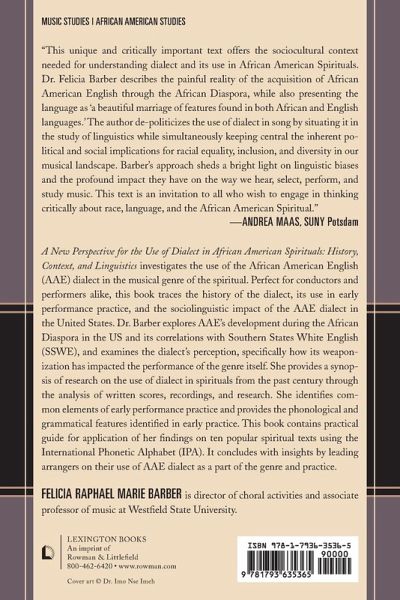 Contents Preface: An Introduction in Purpose Acknowledgments Foreword by Dr. Andre Thomas Definitions List of Figures List of Tables Chapter 1 Sociolinguistics: It is a Matter of Perception Chapter 2 Acquisition of Languages Established as a Result of the African Diaspora Chapter 3 Establishing Performance Practice Part I: Researchers Chapter 4 Establishing Performance Practice Part II: Dialect Employed in the Text Chapter 5 Establishing Performance Practice Part III: Aural History - Transcriptions of Early Sound Recordings Chapter 6 Trace History of Dialect in Four Specific Scores Chapter 7 Research Findings Regarding Use of AAE Dialect in Spirituals: A Practical Application Chapter 8 Moving Forward: Insight from Modern Arrangers and Next Steps Bibliography Appendices About the Author About the Contributors