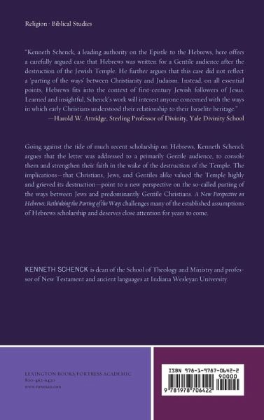 Going against the tide of much recent scholarship on Hebrews, Kenneth Schenck argues that the letter was addressed to a primarily Gentile audience, to console them and strengthen their faith in the wake of the destruction of the Temple. The implications—that Christians, Jews and Gentiles alike, valued the Temple highly and grieved its destruction—point to a new perspective on the so-called parting of the ways between Jews and predominantly Gentile Christians. Schenck’s work challenges many of the established assumptions of Hebrews scholarship and will deserve close attention for years to come.